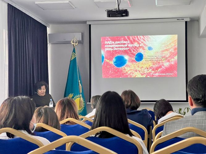 Іс-шараға стационар дәрігерлері қатысып, ААД дамуының өзекті мәселелерін, қауіп факторларын, дисбиоздың қалыптасу механизмдерін және оны түзетудің заманауи тәсілдерін талқылады.