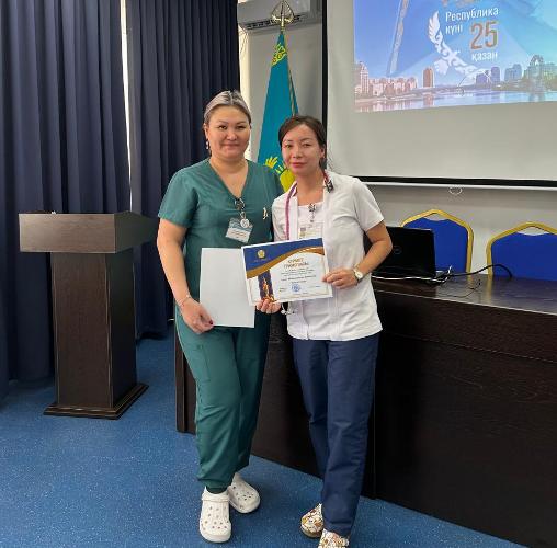Кәсіподақ комитетінің төрайымы М. Джапарова әріптестеріне ыстық ықыласын білдіріп, құттықтау сөз сөйледі. Ол олардың жас мамандарды тәрбиелеудегі және медициналық қызметтің озық дәстүрлерін сақтаудағы маңызды рөлін атап өтті.